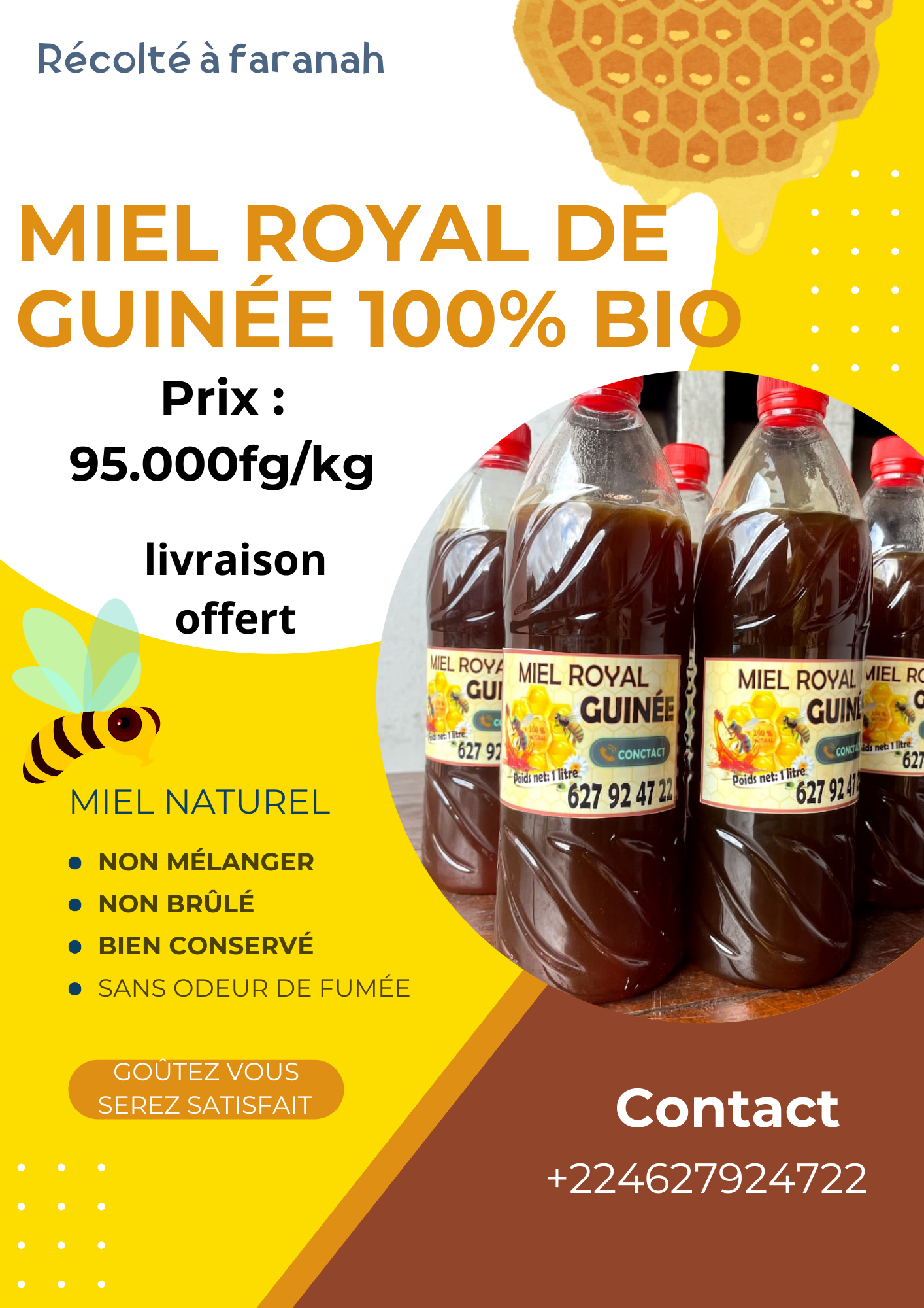 MIEL 🍯 ROYAL DE GUINÉE - 100% PUR ET NATUREL ( Santé, Vitalité et Douceur Authentique, Sans additif )